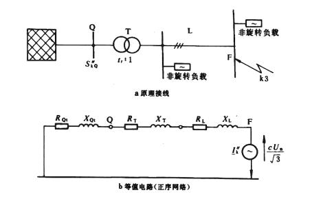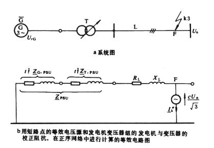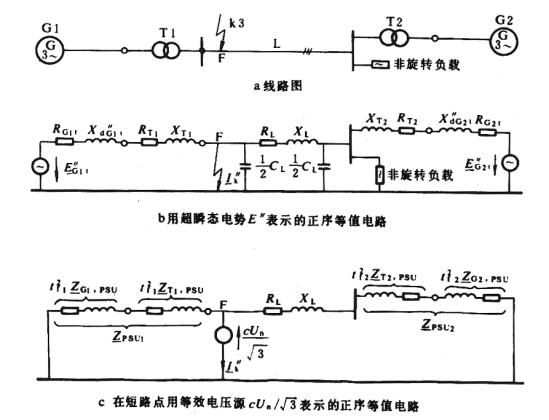 为计算正序系统短路电流,而加于短路点的理想电压源。在网络中,等效电压源是唯一的有源电压。