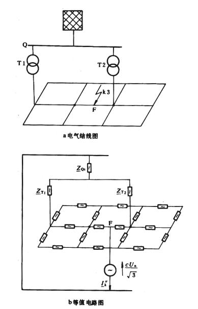 注:短路电流峰值的大小与短路发生的瞬间有关。三相短路电流峰值ip的计算只对会出现最大短路电流的某相和某一瞬间进行。不考虑连续发生的故障。三相短路指三相同时短路。