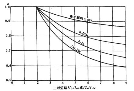 可以把计算异步电动机对称开断电流系数q规定为最小延时tmin的函数: