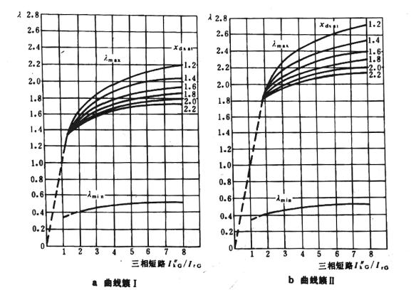 由一台或多台相近的复式励磁发电机并联馈电的近端短路,其最小稳态短路电流根据下式计算: