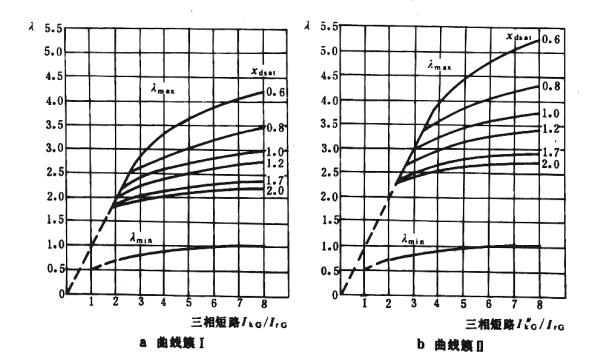 μ根据方程式(47)或图16用I″kM/IrM求出,q根据方程式(67)或图25求出 |