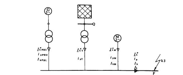 只有在发生三相短路,且短路瞬间利用电动机的转动惯量和静止变频器进行反馈制动(短暂的逆变运行)时,才计及静止变频器驱动的电动机(如轧钢机的驱动电动机)对对称短路电流初始值Ik和短路电流峰值ip的反馈影响。不计对开断电流Ib的影响。