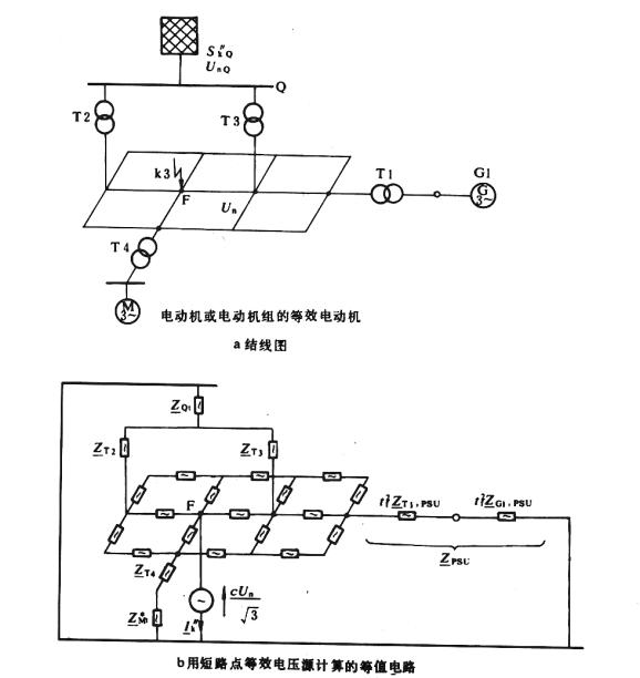 短路计算中必须考虑高压电动机影响,对于发电厂的厂用电和工业设备或与此类似的设备,如化工、钢铁工业自用电网和泵站中的低压电动机也应考虑其影响。