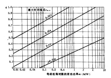 按式(67)算出的q值大于1时,取q=1。系数q还可按照图25,根据电动机每对极功率m和最小延时tmin求取。